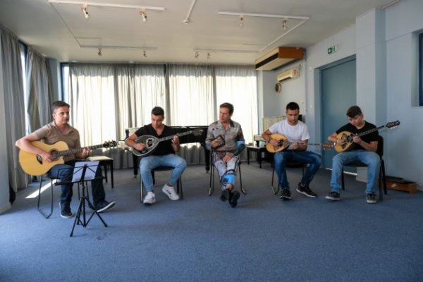 Οι σπουδαστές καλωσόρισαν τον αυθεντικό καλλιτέχνη με μελωδίες μπουζουκιού και, πιο συγκεκριμένα, παίζοντας το «Ώρες Μικρές», το γνήσιο ζεϊμπέκικο σε μουσική Γιώργου Σαμπάνη και στίχους Ελένης Γιαννατσούλια, από το album του «Αγαπώ Σημαίνει».