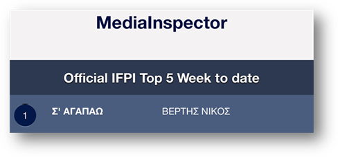 Ο Νίκος Βέρτης στην κορυφή των ραδιοφώνων για πάνω από 10 εβδομάδες στο νούμερο 1 του IFPI Media Inspector chart!