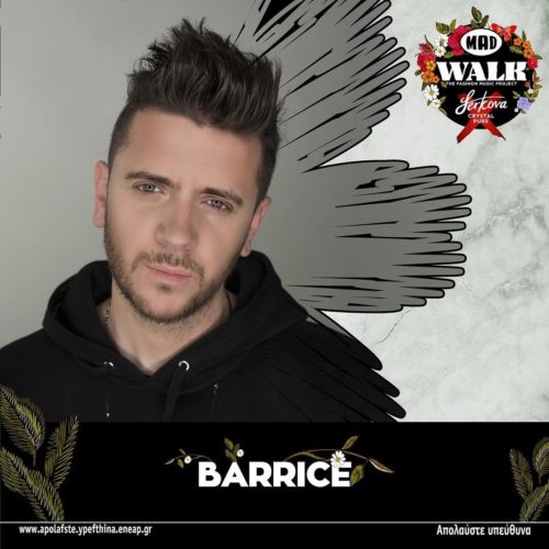 Η Σήλια Κριθαριώτη, η Ελληνίδα σχεδιάστρια που προτιμούν οι ξένοι stars για τις εμφανίσεις τους στο κόκκινο χαλί και όχι μόνο, ενώ τα fashionshows της ξεχωρίζουν στις Μητροπόλεις της μόδας, επέλεξε τον Barrice για να επιμεληθεί την μουσική της φετινής της εμφάνισης στα Madwalk που θα πραγματοποιηθούν την Δευτέρα 1 Απριλίου στο Ολυμπιακό Κέντρο Ξιφασκίας, στο Ελληνικό.