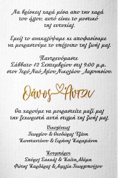 Δείτε στις φωτογραφίες που ακολουθούν το προσκλητήριο του γάμου του ζευγαριού: