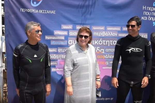 Με εντυπωσιακό τρόπο έκοψαν την κορδέλα στα καταγάλανα νερά του Αιγαίου και σε βάθος 25 μέτρων, ο περιφερειάρχης Θεσσαλίας Κώστας Αγοραστός και ο δημοφιλής τραγουδιστής Σάκης Ρουβάς, οι οποίοι καταδύθηκαν υπό τα χειροκροτήματα της υπουργού Πολιτισμού Λίνας Μενδώνη, που παρακολουθούσε από απόσταση αναπνοής από σκάφος την πρωτόγνωρη εμπειρία των εγκαινίων του υποβρύχιου μουσείου του ναυαγίου της Περιστέρας.