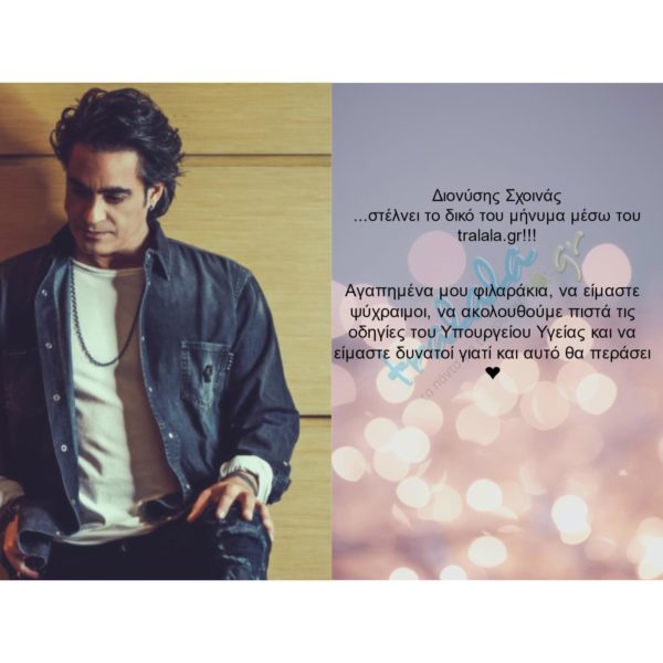 Και ο αγαπημένος Διονύσης Σχοινάς ανταποκρίθηκε με χαρά στο κάλεσμα του tralala.gr κι έστειλε κι εκείνος το δικό του μήνυμα αισιοδοξίας και στήριξης.