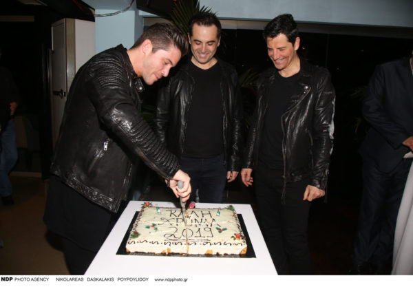 Από το πλάι του δεν θα μπορούσαν φυσικά να λείπουν όλοι οι τραγουδιστές και στενοί συνεργάτες του, ανάμεσα τους ο Νίκος Οικονομόπουλος και ο Σάκης Ρουβάς οι οποίοι έκοψαν μαζί του τη βασιλόπιτα και ευχήθηκαν σε όλους μια υγιή και δημιουργική νέα χρονιά.