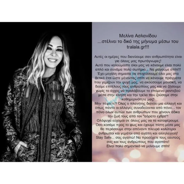 Μελίνα Ασλανίδου …στέλνει το δικό της μήνυμα μέσω του tralala.gr!