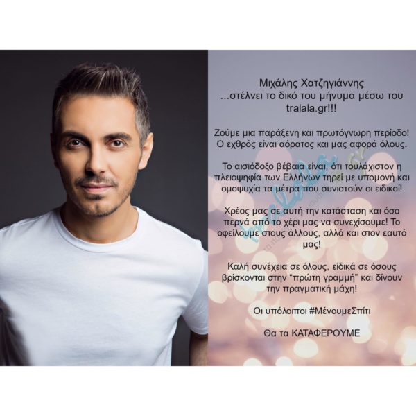 Μιχάλης Χατζηγιάννης …στέλνει το δικό του μήνυμα μέσω του tralala.gr!