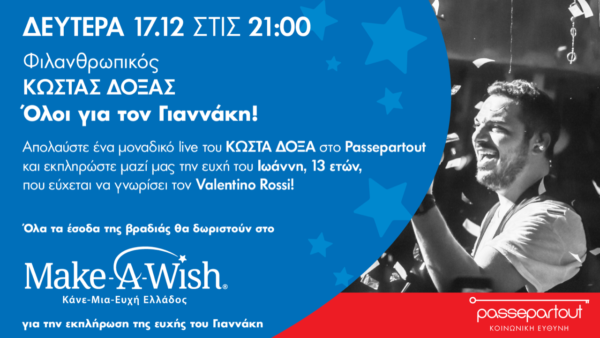 Σας περιμένουμε όλους στο PassePartout τη Δευτέρα 17/12 γιατί όλοι μαζί μπορούμε να πραγματοποιήσουμε την ευχή του Γιαννάκη!
