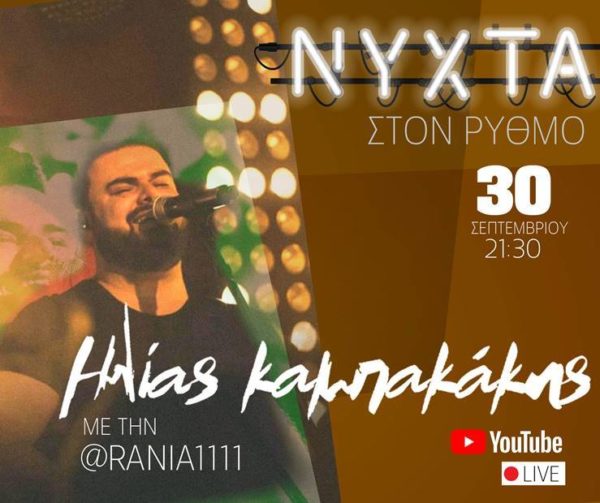Σ’ αυτή την φθινοπωρινή ΝΥΧΤΑ Τετάρτης, στις 30 Σεπτεμβρίου, η Ράνια Κωστάκη, θα υποδεχθεί τον Ηλία Καμπακάκη στις 21.30 ακριβώς για να μας πει… αλλά και να μας τραγουδήσει πολλά…. σε ένα ακόμα μοναδικό YouTube LIVE, αποκλειστικά στο επίσημο κανάλι του Ρυθμού 94.9, Rythmos Tube.