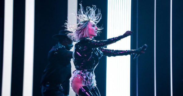Η Τάμτα φορά το ίδιο body και τις ίδιες vinyl μπότες, ενώ δείχνει ακόμα πιο σίγουρη και λαμπερή επί σκηνής.