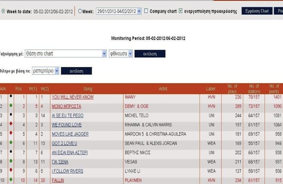 Η Panik Records μπορεί να είναι νέα σχετικά εταιρία αλλά φαίνεται πως ξέρει και ανακαλύπτει γρήγορα τα μεγάλα hits. Έτσι λοιπόν σήμερα, έχουμε στην κορυφή του national airplay chart του MediaInsprctor την Imany και τη Demy!