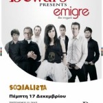δεν πρέπει να χάσετε. Οι ΕMIGRΕ θα τραγουδήσουν με το δικό τους μοναδικό τρόπο επιτυχίες από τις τελευταίες τους δισκογραφικές δουλειές, αλλά και τραγούδια από την Ελληνική και διεθνή δισκογραφία σε μια βραδιά με πολύ μουσική.