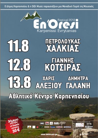 Γαλάνη, Αλεξίου, Κότσιρας, Χαλκιάς στο En’Oresi Festival στις 11, 12 και 13/8 στο Καρπενήσι