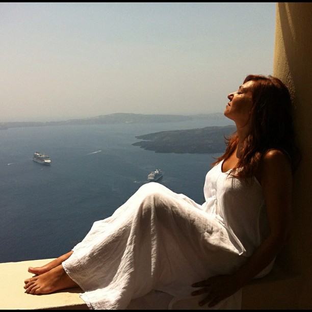 Η τραγουδίστρια βρισκόταν μαζί με την οικογένειά της στην εξοχική της κατοικία στην Επίδαυρο, αλλά οι επαγγελματικές τις υποχρεώσεις την ανάγκασαν να κάνει ένα ταξιδάκι μέχρι τη Σαντορίνη, αν και οι αστείρευτες ομορφιές του νησιού την αποζημίωσαν! Τα γυρίσματα γίνονται για τις ανάγκες των live παραστάσεων που θα ξεκινήσει από τον Οκτώβριο σε κινηματογράφο των βορείων προαστίων της Αθήνας. Πρόκειται για εμφανίσεις με τραγούδια δικά της και άλλων καλλιτεχνών, σε αυθεντικές και εναλλακτικές εκτελέσεις, «ντυμένα» με πλούσιο οπτικό υλικό. Δείτε και εσείς μερικές από τις φωτογραφίες για να πάρετε μια γεύση: