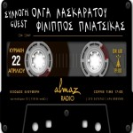 Αυτή την Κυριακή 22 Απριλίου , στις 19.00 , η Όλγα Λασκαράτου παίζει τραγούδια του Φίλιππου Πλιάτσικα και ο Φίλιππος παίζει τα τραγούδια που έχει αγαπήσει.