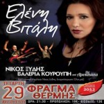 Η μεγάλη ερμηνεύτρια θα έχει στο πλάι της τον Νίκο Ξύδη, που φέρνει μαζί του την ολοκαίνουργια δισκογραφική του δουλειά «ΠΑΤΕΝΤΑ», τη Βαλέρια Κουρούπη, τους πολυσυζητημένους Apotihans και τρεις κορυφαίους σολίστες. Όλοι μαζί, θα ερμηνεύσουν και διασκευάσουν τις μεγάλες επιτυχίες της Ελένης Βιτάλη αλλά και τραγούδια που όλοι αγαπάμε και σιγοτραγουδάμε, όπως το «Ένα χειμωνιάτικο πρωί», «Η Κιβωτός», «Εγώ τραγούδαγα», «Μακριά μου να φύγεις», τραγούδια της κορυφαίας ελληνίδας τραγουδίστριας που απογειώνουν και συγκινούν το κοινό με τη συγκλονιστική της ερμηνεία.