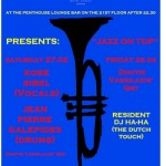 Σάββατο 27/02 Special female single from Turkey Kose Sibel συναντά τον δημοφιλή Jean Pierre Galepides στα ντράμς και την Residence Βand του ξενοδοχείου President με τον κορυφαίο Ελληνα σαξοφωνίστα Δημήτρη Βασσιλάκη και την ορχήστρα του για μία εξαιρετική παράσταση στο Jazz On Top στον 21όροφο του ξενοδοχείου President με πανοραμική θέα της Αθήνας. Special Guest DJ HaHa the Dutch. Εισ.15€