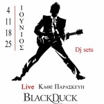twist και τα shake των Elvis, Little Richard, Jerry Lee Lewis, Bill Haley από τη χρυσή εποχή του Rock’n’Roll, η resident band του Black Duck δημιουργεί τις κατάλληλες προϋποθέσεις για ξέφρενο party με χορό, διασκέδαση και special cocktails.