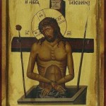ο εν ύδασι την γην κρεμάσας. Στέφανον εξ ακανθών περιτίθεται, ο των αγγέλων βασιλεύς. Ψευδή πορφύραν περιβάλλεται, ο περιβάλλων τον ουρανόν εν νεφέλαις. Ράπισμα κατεδέξατο, ο εν Ιορδάνη ελευθερώσας τον Αδάμ. Προσηλώθη, ο νυμφίος της Εκκλησίας. Λόγχη εκαντήθη, ο υιός της Παρθένου. Προσκυνούμεν σου τα Πάθη, Χριστέ. Δείξον ημίν και την ένδοξόν σου Ανάστασιν.”