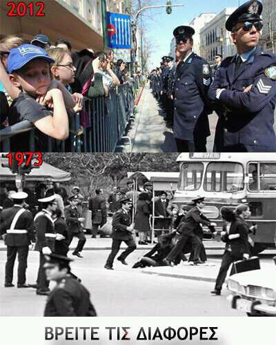 Στην παρέλαση πήγατε φέτος? Λάβατε μέρος ή απλά παρακολουθήσατε ως θεατές? Κι από ποια πλευρά του δρόμου, για να ‘χουμε καλό ρώτημα, σταθήκατε?? ΠΡΟΣΕΞΤΕ ΤΙ ΘΑ ΑΠΑΝΤΗΣΕΤΕ! Αν μπορούσαν οι αγωνιστές του ’21 να δουν – από μια μεριά – αυτή την εικόνα, ειλικρινά δεν ξέρω τι θα σχολίαζαν. Μάλλον το σχόλιο τους θα κρινόταν «ακατάλληλο δι’ ανηλίκους»!!!