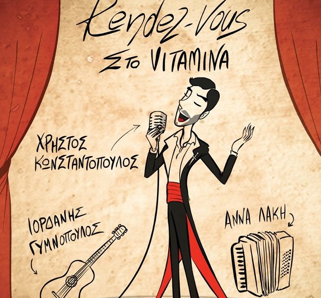 Παρασκευή βράδυ, στο VITAMINA στο Γκάζι, είχαμε ”Rendez-Vous”! Ο νεαρός τραγουδιστής Χρήστος Κωνσταντόπουλος, με μοναδικό τρόπο πραγματικά, μας ταξίδεψε! Εξαιρετική φωνή – και λίγα λέω – μας ξενάγησε στα υπόγεια Cabaret της Γαλλίας, στις μουσικές του μεσοπολέμου, ενώ στροβιλιστήκαμε μαζί του σε παθιασμένα ταγκός. Τραγούδια γεμάτα συναισθήματα, από εποχές παλιότερες, αλλά με τη φρεσκάδα νέων καλλιτεχνών. Έρχονται να συμπληρώσουν το «κενό» που νιώθουμε αυτή την εποχή. Μελωδίες του Αττίκ, του Σουγιούλ, της Πιάφ. Τραγούδια εμπνευσμένα από τον έρωτα και το πάθος για ζωή. Ήταν μια βραδιά υπέροχη, περάσαμε απρόσμενα καλά, ολόκληρη η παρέα. Τέτοιες παραστάσεις θέλουμε. …κι όμως μας λείπουν!