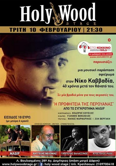 Αφιέρωμα στον Νίκο Καββαδία 40 χρόνια από τον θάνατό του στο Holy Wood Stage! 10/2