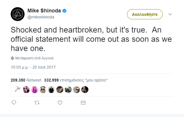 Η είδηση που έκανε το γύρω του διαδικτύου επιβεβαιώθηκε από τον Mike Shinoda μέλος του group, ο οποίος έγραψε το εξής: