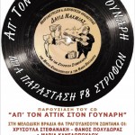 Μετά την παρουσίαση του CD θα ακολουθήσει η παράσταση- συναυλία «Απ’ τον Αττίκ στον Γούναρη» με τους συντελεστές της δισκογραφικής δουλειάς.