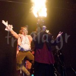 Το ωραίο set list εμπλουτίστηκε από το εντυπωσιακό show της μπάντας όπου από τη κουστωδία του υπερκινητικού Brown ξεχώριζε μια εξίσου τρελή με αυτόν Τσέχα πληκτρού καθώς και η χορεύτρια που άλλαξε γκαρνταρόμπα περισσότερες φορές και από τον Arthur. Πολλά τα κομμάτια που ξεχώρισαν(“Spontaneous Apple Creation”, “Voice of love”, “Devils Grip”, “I Put a Spell on You” μεταξύ άλλων), αλλά μάλλον περιττό να αναφέρω ότι κατά τη διάρκεια του “Fire” με την γνωστή φλεγόμενη περικεφαλαία φτάσαμε και στο ζενίθ της εμφάνισης. Μετά από αυτό εμφανώς κουρασμένος έριξε τους τόνους με τρία χαμηλών τόνων κομμάτια (αρχής γενόμενης με το “Don’t Let Me Be Misunderstood”) οπού λειτούργησαν ως επίλογος της συναυλίας.