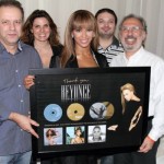 Στην φωτογραφία η Beyoncé παραλαμβάνει την πλακέτα για τις συνολικές χρυσές πωλήσεις όλων των προσωπικών της album: τα”Dangerously In Love” και “B’Day” αλλά και για το πρόσφατο