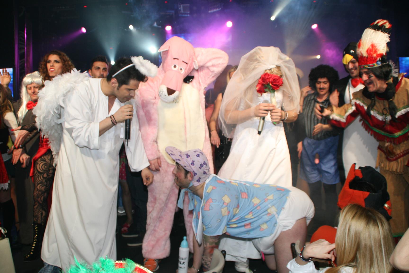 Έτσι και φέτος το σύνθημα έδωσαν ο Γιώργος Τσαλίκης ντυμένος” Άγιος”, ακολουθώντας την τεραστία επιτυχία που κάνει το καινούργιο του τραγούδι ” Δεν σου κάνω τον Άγιο”, η Χρύσπα σεξυ αστυνομικος, ο Κυριάκος Κυανος “μωρό στην κουνια” και ο Σάκης Αρσενίου ” Νύφη”