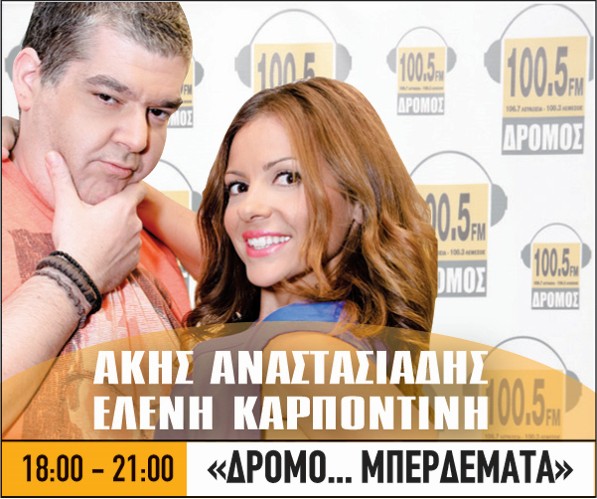 18:00 – 21:00: ΔΡΟΜΟ…ΜΠΕΡΔΕΜΑΤΑ ( Άκης Αναστασιάδης – Ελένη Καρποντίνη ) –ΔΡΟΜΟΣ FM–EΛΛΑΔΑ
