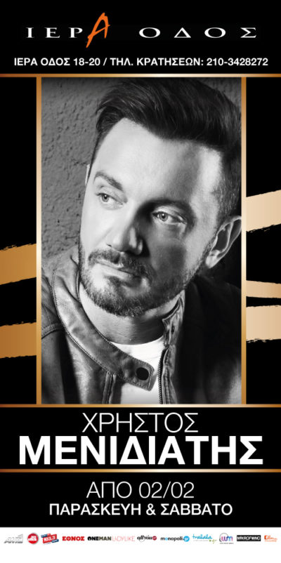 Ο Χρήστος Μενιδιάτης, σταθμός στην νυχτερινή διασκέδαση, αγαπητός στο κοινό με την γνήσια λαϊκή φωνή του, θα ερμηνεύσει αγαπημένα τραγούδια και φυσικά τις τελευταίες του μεγάλες επιτυχίες, αφήνοντας το δικό του στίγμα στα βράδια μας στην Ιερά Οδό.