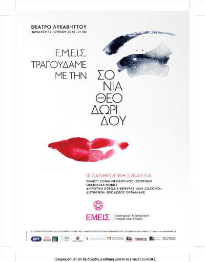 Η παγκοσμίου φήμης σοπράνο Σόνια Θεοδωρίδου στηρίζοντας την προσπάθεια της νεοσυσταθείσας Εταιρίας Ε.Μ.Ε.Ι.Σ που στόχο έχει την πλήρη στήριξη (ιατρική & οικονομική) απόρων γυναικών με καρκίνο του μαστού θα μας ταξιδέψει με τραγούδια του παγκοσμίου και ελληνικού ρεπερτορίου, από τον Χατζιδάκι και τον Θεοδωράκη έως τον Puccini και τον Lucio Dalla. Η Σόνια Θεοδωρίδου, με αφορμή αυτή τη συναυλία, στέλνει το μήνυμα πως Ίαση είναι η προσφορά και αλληλεγγύη των ανθρώπων απ’ όπου κι αν προέρχονται. Οι συντελεστές του έργου είναι: Σολίστ: Σόνια Θεοδωρίδου, σοπράνο, Ορχήστρα: Orchestra Mobile, Διεύθυνση Ορχήστρας: Θεόδωρος Ορφανίδης, Συμμετοχή: Δημοτική Χορωδία Κέρκυρας «San Giacomo», Διεύθυνση Χορωδίας: Antony Ivanov.