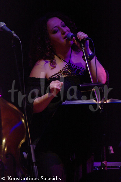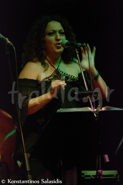 Όταν ανέβηκε η τραγουδίστρια στα αριστερά της σκηνής είχε λάβει τη θέση του το μπουζούκι, μαρτυρώντας μια πιο λαϊκή κατεύθυνση της βραδιάς. Το μόνο πρόβλημα που αντιμετώπισε η καλλιτέχνης ήταν ένας ενοχλητικός μικροφωνισμός την ώρα που τραγουδούσε, αλλά δε φάνηκε να την ενοχλεί στο ελάχιστο, το καθαρά μουσικό μέρος ήταν άψογο. Τραγούδησε καινούργια τραγούδια του Φίλιππου Πλακιά και το “Να μ’ αγαπάς” από το Τρίφωνο. Όταν βγήκε δε δεύτερη φορά, όλα ήταν ιδανικά, χωρίς προβλήματα και οι ερμηνείες ήταν τουλάχιστον απολαυστικές.