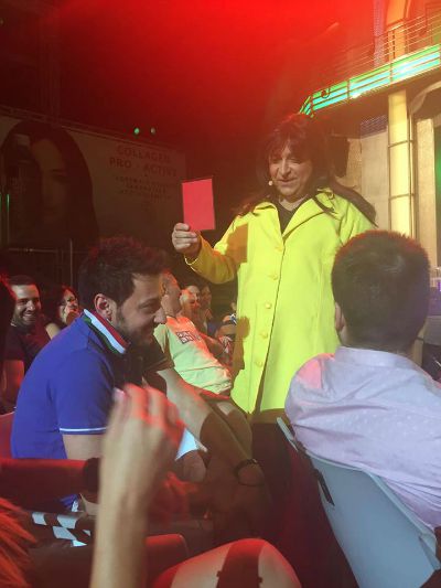 Ο επιτυχημένος showman με το που αντιλήφθηκε την παρουσία του Πάνου Καλίδη στην πλατεία του θεάτρου τον πλησίασε και ντυμένος Ζωή Κωνσταντοπούλου του έβγαλε… κόκκινη κάρτα.