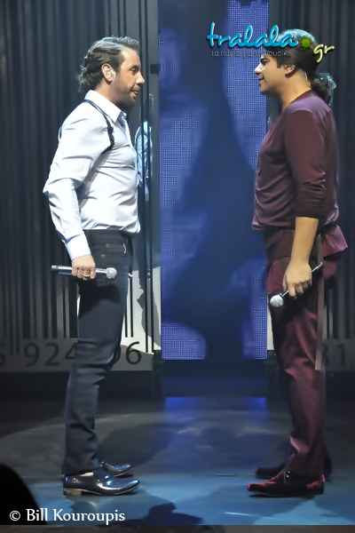 Η ώρα που θα συναντούσαμε για πρώτη φορά στην ίδια σκηνή, τον Γιώργο Μαζωνάκη και τον Νίκο Κουρκούλη έφτασε. Το tralala.gr βρέθηκε εκεί και σας μεταφέρει όλα όσα έγιναν. Αν και το σχήμα άργησε να ξεκινήσει τις εμφανίσεις του, οι καλλιτέχνες ήταν τυπικοί, χωρίς καμία αναβολή στην πρεμιέρα.