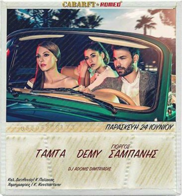 Αυτή τη φορά ο ταλαντούχος ερμηνευτής ξεκινά εμφανίσεις στο Cabaret @ Romeo έχοντας την Τάμτα και την Demy στο πλευρό του. Την όμορφη παρέα τους συμπληρώνει ο DJ Αντώνης Δημητριάδης που θα μας ξεσηκώσει με τις μουσικές επιλογές του.