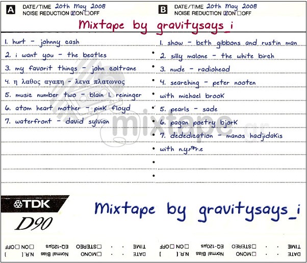 Μετά τη κυκλοφορία του αναμενόμενου debut album, οι Gravitysays_i έδωσαν στη δημοσιότητα μια λίστα από τα κομμάτια που αποτέλεσαν τη πηγή της έμπνευσής τους και σύμφωνα με τους ίδιους οδήγησαν στη δημιουργία του “Roughest Sea”. Ανάμεσα στη λίστα συναντάμε ονόματα όπως Johnny Cash, The Beatles, Pink Floyd, Radiohead, Λένα Πλάτωνος και φυσικά αυτό του Μάνου Χατζιδάκη.