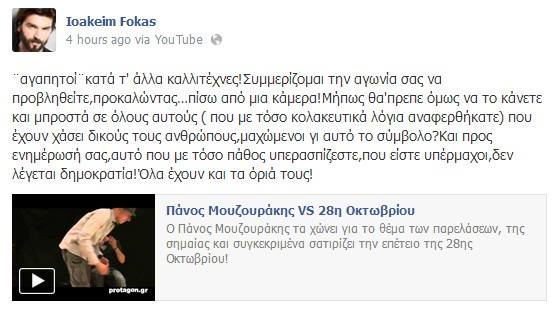 Η αντίδραση του Ιωακείμ Φωκά απέναντι στο video του Πάνου Μουζουράκη