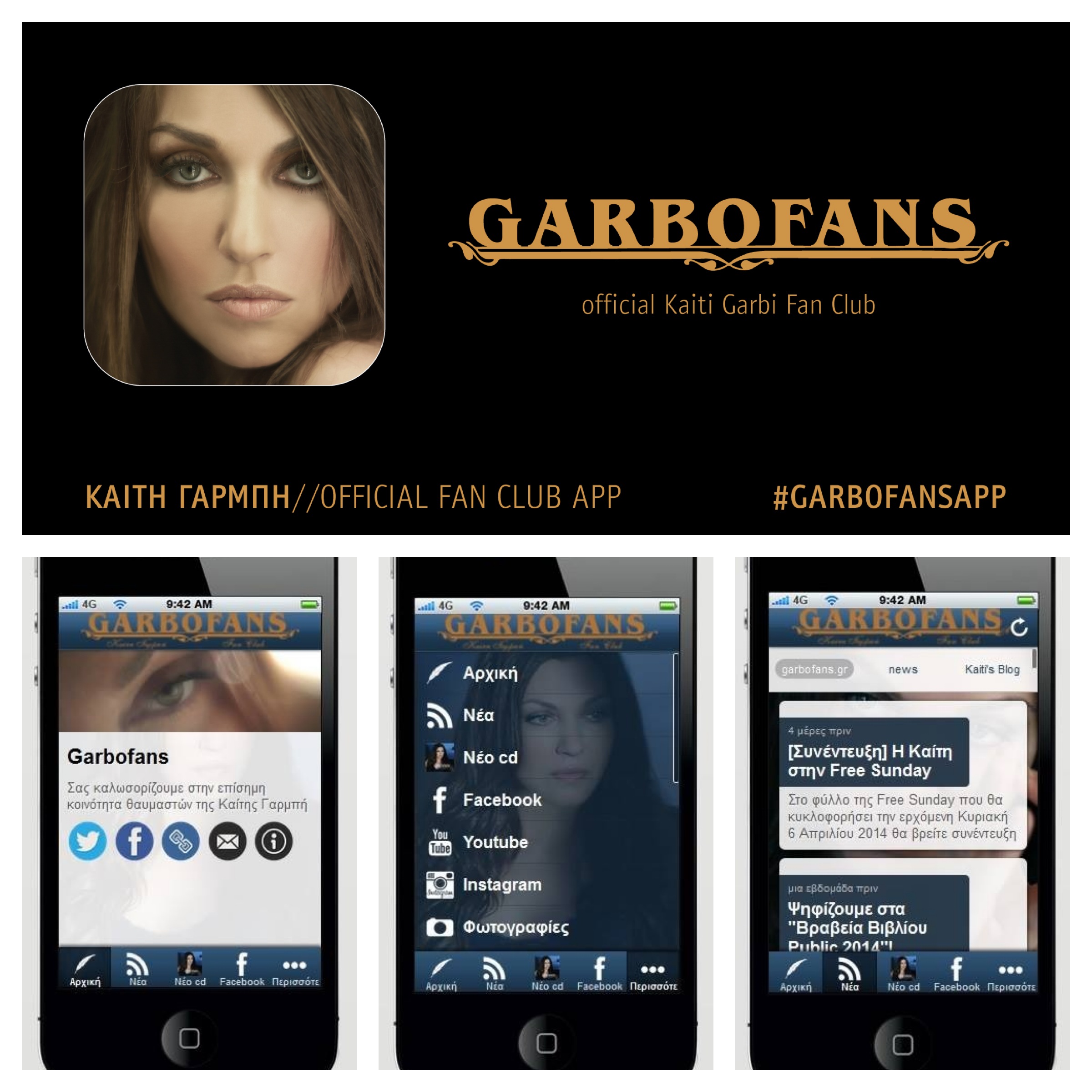 Μέσα από το application της Καίτης Γαρμπή θα μπορούν οι θαυμαστές της να μαθαίνουν τα τελευταία της νέα, θα υπάρχει πλούσιο οπτικοακουστικό υλικό, καθώς και ένα παιχνίδι με τους στίχους απο τα τραγούδια της ερμηνεύτριας. Επίσης εκτός από το application, υπάρχει και μια επιπλέον εφαρμογή για το fan club της, τους Garbofans, όπου θα έχουν επιπλέον δυνατότητες σχετικά με την αγαπημένη τους ερμηνεύτρια. Η εφαρμογή είναι διαθέσιμη για λογισμικά IOS και Αndroid.