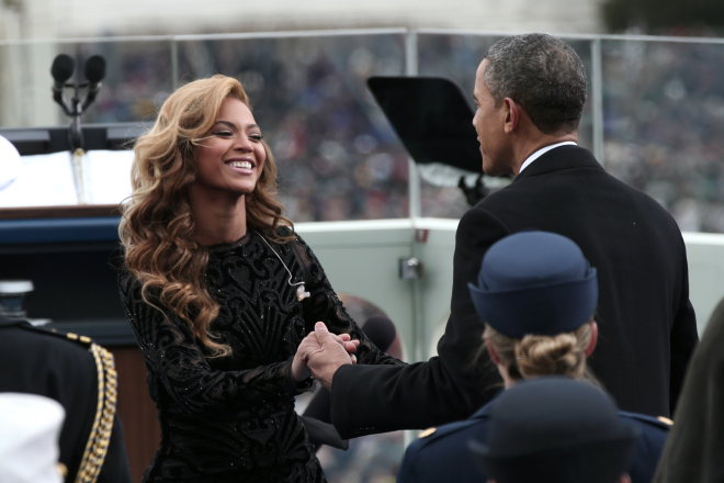 Η διάσημη τραγουδίστρια από το Texas είναι θερμή υποστηρίκτρια του Αμερικανού προέδρου και φροντίζει να το αποδεικνύει όποτε της δίνεται η ευκαιρία. Έτσι και αυτή τη φορά, δέχθηκε την τόσο τιμητική πρόταση και τραγούδησε τον εθνικό ύμνο στην τελετή ορκωμοσίας του Barack Obama ενώπιον εκατοντάδων χιλιάδων ανθρώπων. Η pop star επέλεξε να εμφανιστεί με μακριά μαύρη τουαλέτα με παγέτες και διαφάνεια, όπως ακριβώς επιτάσσει το dress code σε μια τόσο σημαντική περίσταση! Αφού χαιρέτησε το προεδρικό ζεύγος, στάθηκε στη διαμορφωμένη πλατφόρμα που είχε στηθεί στη βάση του αμερικανικού Καπιτωλίου όπου και τραγούδησε ζωντανά. Είναι γνωστό άλλωστε πως η Beyonce είναι οικογενειακή φίλη της οικογένειας Obama και φυσικά εκείνοι, φανατικοί της υποστηρικτές.