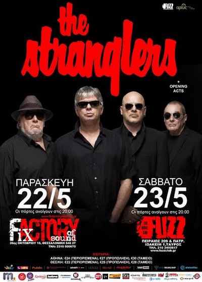 Οι Stranglers, οι θρυλικοί Men In Black του punk και ένα από τα σπουδαιότερα συγκροτήματα που ανέδειξε ποτέ η Βρετανική rock’n’roll σκηνή, επιστρέφουν στην Ελλάδα! Έχοντας συμπληρώσει 40 χρόνια πορείας, η παρέα των Jean-Jacques Burnel, Dave Greenfield, Jet Black και Baz Warne θα βρεθεί την Παρασκευή 22 Μαϊου στη Θεσσαλονίκη (Fix Factory of Sound) για μία μεγάλη συναυλία γεμάτη από τα τραγούδια που τους έκαναν γνωστούς σε πολλές γενιές μουσικόφιλων, από το 1974 μέχρι σήμερα!