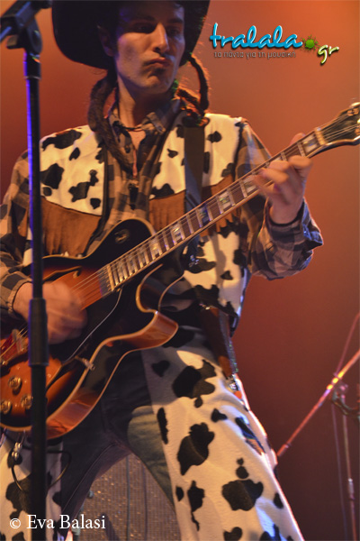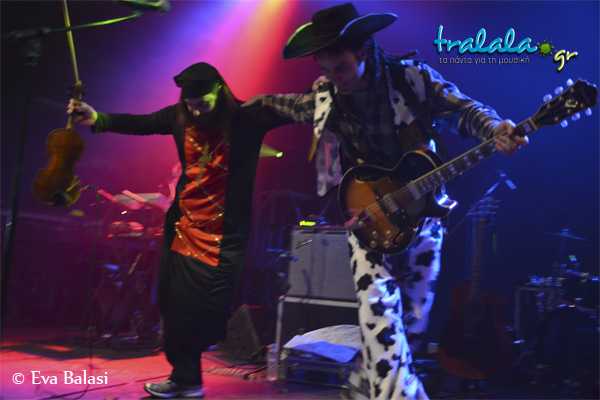 Λίγο πριν τις 23:00, οκτώ αξιαγάπητοι μασκαράδες [πέρα από τον καουμπόη, Μάρκο Κούμαρη (φωνή και κιθάρα) είχαμε τον Φλινστόουν Γιάννη Βαρνάβα (κιθάρα, φωνή), τον σεΐχη Σταμάτη Γούλα (πλήκτρα και sampler) τον διακριτικό Ζορό Σπύρο Μπεσδέκη στο μπάσο, τον disco girl Στρατή-Άγγελο Σούντρη στα ντραμς, τον σεβασμιότατο ιερωμένο Δημήτρη Γάσια με το διαβολικό του βιολί, και το ευτυχές ζεύγος νεονύμφων πνευστών, τον γαμπρό Νίκο Βλάχο στη τρομπέτα και την νύφη Βασίλη Παναγιωτόπουλο στο τρομπόνι] καταλαμβάνουν τη σκηνή του Gagarin και μας παρουσιάζουν ένα medley από κομμάτια που θα ακούσουμε στη πορεία της βραδιάς.