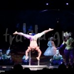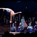 Αμέσως μετά δυο όμορφες καλλιτέχνιδες της αιώρας αψηφούν τη βαρύτητα, και παρουσιάζουν ένα μοναδικό θέαμα εκπληκτικής αρμονίας. Το εναέριο ντουέτο αιωρείται με απόλυτο συγχρονισμό κι αβίαστη ζωτικότητα και πραγματοποιεί περιστροφές στον αέρα που κόβουν την ανάσα του κόσμου. Ξαφνικά ως δια μαγείας από κάτω από την σκηνή με κρυφούς μηχανισμούς εμφανίζεται ένα ιδιότυπο τραμπολίνο. Μια αιθέρια ομάδα ζεσταίνει κι άλλο την ατμόσφαιρα όταν αρχίζει να πετάει στον αέρα, εκτελώντας με ζωντάνια ασκήσεις κι ακροβασίες, αγγίζοντας απίστευτα ύψη και ταχύτητες, κερδίζοντας το ζεστό και έντονο χειροκρότημα του κοινού. Το επόμενο νούμερο είχε πολύ φαντασία, αρμονία και φυσικά μεγάλη μυϊκή δύναμη κι ευλυγισία. Επιδεικνύοντας εντυπωσιακή αυτοκυριαρχία, ο υπεράνθρωπος καλλιτέχνης άρχισε να ισορροπεί πάνω σε ράβδους διαφόρων μεγεθών, εκτελώντας μια σειρά από εκπληκτικές φιγούρες που αφήνουν το στόμα ανοιχτό.