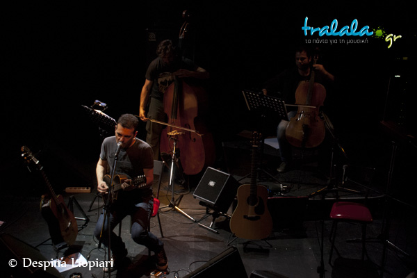 Γύρω μετά τις 23.00 οι τρεις εξαίρετοι μουσικοί Μιχάλης Βρέττας στο βιολί, Άρης Ζέρβας στο τσέλο και Μιχάλης Καλκάνης στο κοντραμπάσο πήραν τις θέσεις τους στη σκηνή, ακολούθησε ο Μανώλης Φάμελλος που πήρε την κιθάρα του, στάθηκε πίσω απ’ το μικρόφωνο και οι πρώτες γλυκές νότες ήχησαν στα αυτιά μας.