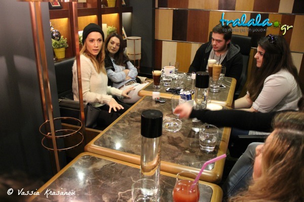 Όλα ήταν έτοιμα την Δευτέρα 13 Ιανουαρίου και το ραντεβού δόθηκε στο όμορφο Dorsia Café στη Γλυφάδα. Οι πέντε τυχεροί νικητές βρέθηκαν στο μαγαζί μισή ώρα νωρίτερα από το προκαθορισμένο μας ραντεβού ώστε να έχουν τη δυνατότητα να γνωριστούν μεταξύ τους και φυσικά να «συνεννοηθούν» για τις ερωτήσεις που θα επέβαλαν στην αγαπημένη τους καλλιτέχνιδα.