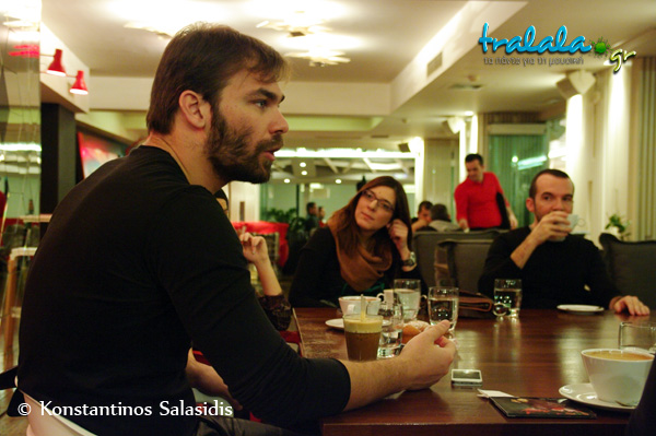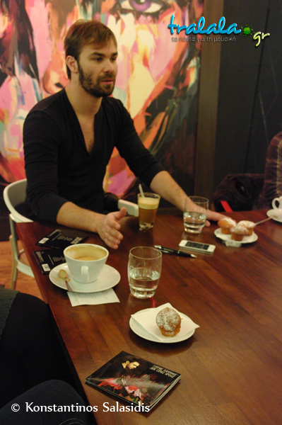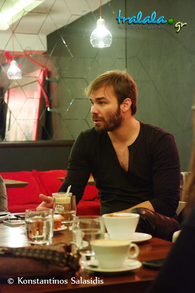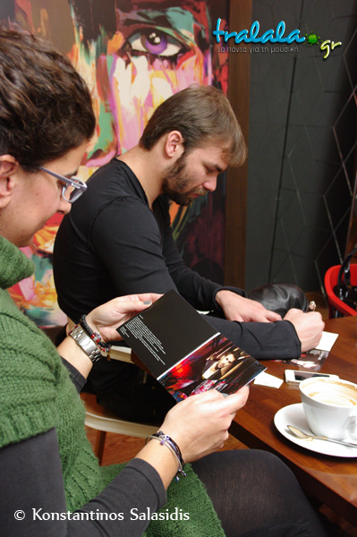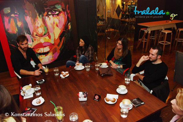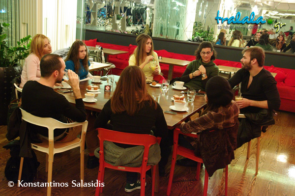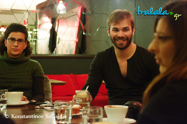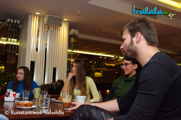 Εκείνος απ’ την πλευρά του χαλαρός και με πολύ ανεβασμένη διάθεση έφτασε ακριβώς στην ώρα του κερδίζοντας με την συνέπεια του τις εντυπώσεις των θαυμαστριών του! Παρήγγειλε το καφεδάκι του και δήλωσε πανέτοιμος για το ξεκίνημα της γνωριμίας τους. Αφοπλιστικά ειλικρινής δεν δίστασε να απαντήσει σε όλες τις ερωτήσεις που του έθεσαν δείχνοντας με αυτό τον τρόπο πως τα πιστεύω του δεν έχουν αλλοιωθεί παρόλη την επιτυχία που γνωρίζει! Κατά τη διάρκεια της συζήτησης μάλιστα πρόσφερε στα τέσσερα τυχερά κορίτσια το νέο του cd υπογεγραμμένο από τον ίδιο… Ζήτησε δε από την κάθε μια να του πει ξεχωριστά ποιο είναι το αγαπημένο της τραγούδι από το cd για να γράψει πάνω σε αυτό την αφιέρωση!