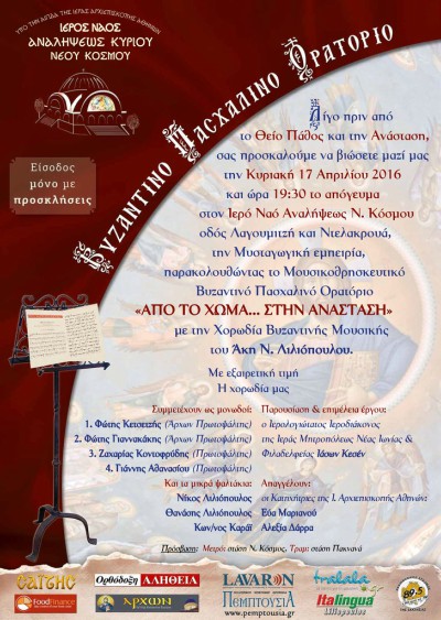 Μεγάλο Βυζαντινό Πασχαλινό Ορατόριο υπό την Αιγίδα της Ιερά Αρχιεπισκοπής Αθηνών | 17/4