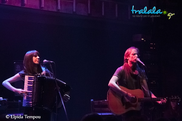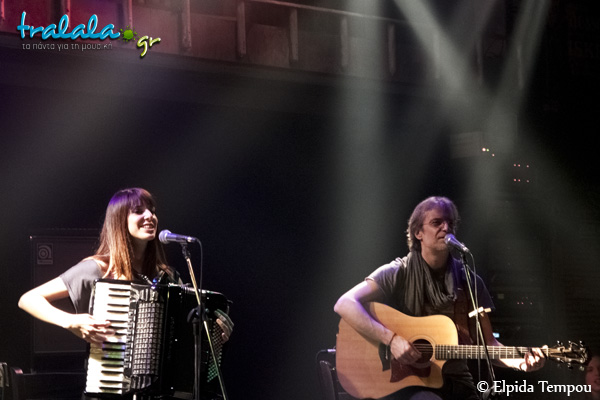 Φεύγοντας από το καμαρίνι, βρήκαμε μια ελεύθερη γωνίτσα και σταθήκαμε εκεί για να απολαύσουμε την παράσταση. Γύρω στις 11, ανέβηκε στη σκηνή η Μιρέλα Πάχου και με μοναδική συνοδεία το ακορντεόν της, μας καλωσόρισε παίζοντας μια γλυκιά μελωδία. Έπειτα, ανέβηκε επί σκηνής και ο Μίλτος Πασχαλίδης και μαζί ερμήνευσαν το τραγούδι «της Πούλιας».