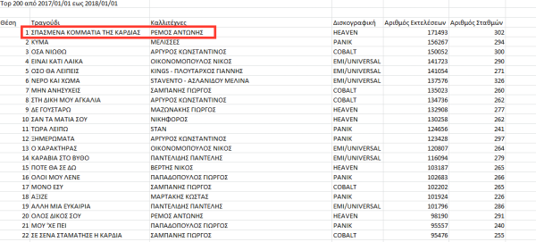 Σύμφωνα με τον επίσημο κατάλογο όλων των ελληνικών ραδιοφώνων στο air play από 1/1 2017 εως 1/1 2018 το συγκεκριμένο τραγούδι ήταν για έναν ολόκληρο χρόνο Νούμερο 1 και συνεχίζει…