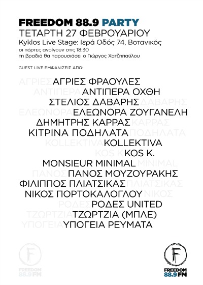 Ο Freedom 88.9 επιστρέφει στα fm με ένα μεγάλο party! 27/2